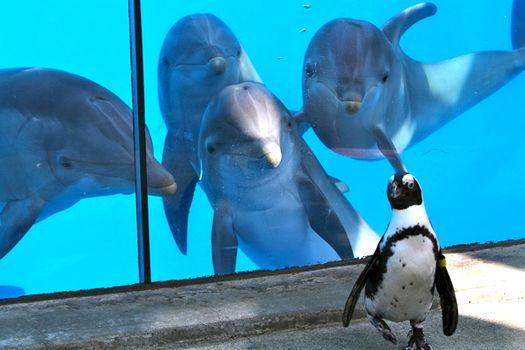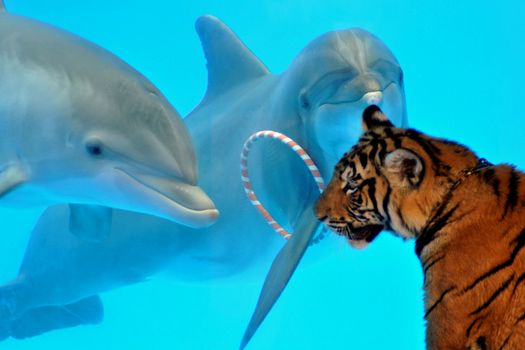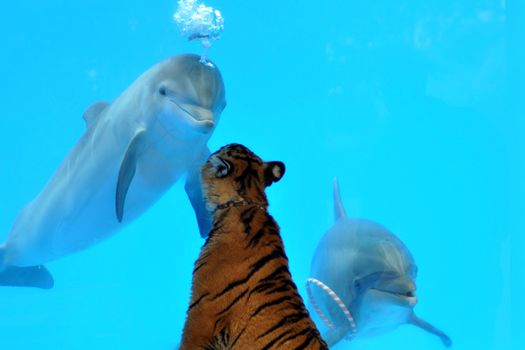 Tigrul Akaasha a fost surprins în câteva fotografii la bazinul în care trăieşte delfinul Mavrix. De asemenea, Mavrix şi prietenii săi delfini au primit vizita unor pinguini.
