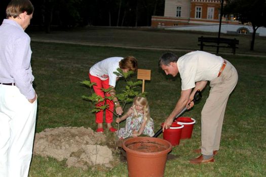 Copacul a fost numit „Stejarul Principele George” şi a fost plantat în prezenţa şi cu ajutorul ambasadorului Martin Harris, a soţiei sale, Linda MacLachlan, şi a fiicelor lor, Catriona, Tabitha şi Flora.