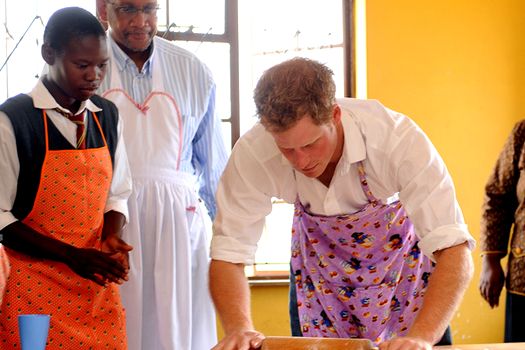 După lecţiile de limbaj al semnelor, Harry a fost nevoit să înveţe să gătească gogoşi, britanicul primind un şorţ de culoare roz, motiv pentru care copiii ce asistau la vizită au început să râdă. Prinţul a intrat în atmosfera jovială şi a glumit pe seama acestui subiect cu Seeiso.