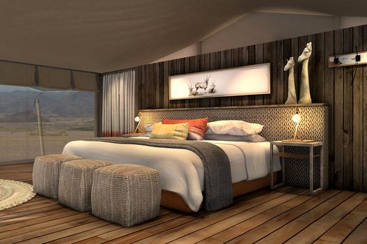 Campingul de lux, ecologic, oferă şase camere construite astfel încât să respecte mediul înconjurător, băi cu duşuri interioare şi exterioare, WiFi, mâncare şi băuturi locale. Se pot face plimbări în natură ghidate, iar turiştii pot vedea rinoceri, elefanţi şi girafe.