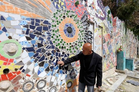 Colajul, ce are forma unui zid, este făcut din diverse piese reciclate de automobile, biciclete, ustensile de bucătărie, ţevi, cutii de sucuri carbogazoase, ceramică şi oglinzi.