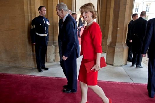 La această recepţie, regina Elizabeth a II-a a purtat un costum din mătase albă, în timp ce principesa Margareta a purtat un costum de culoare roşie.