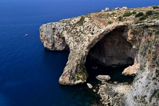 În drumul spre unul dintre cele mai frumoase peisaje din Malta – Grota Albastră – atenţia se opreşte asupra Templului Megalitic Hagar Qim, pe care maltezii îl aseamănă cu Stonehenge din Anglia. Bucăţi de piatră portocalii mai mari – de şase-şapte metri – sau mai mici sunt dispuse vertical şi orizontal, formând încăperi unde se aduceau ofrande sau sacrificii zeiţei fertilităţii. Templul a fost construit în urmă cu 5.000 de ani, în perioada Neolitică, şi are forma corpului zeiţei – cap, umeri, şolduri.