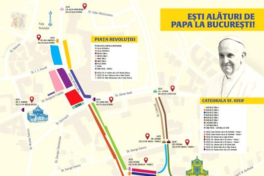 (Pe celelalte porţiuni ale traseului coloana Suveranului Pontif se va deplasa conform protocolului de securitate impus de eveniment şi de aceea, pe aceste tronsoane de deplasare scad şansele de a-l vedea pe Papa Francisc. Pe traseul de deplasare al coloanei oficiale este interzisă folosirea dronelor)