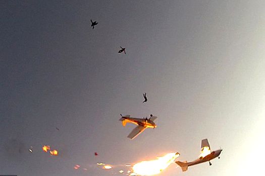 În înregistrare se văd paraşutiştii din cel de-al doilea avion ieşind şi pregătindu-se să sară. Avionul lor zbura chiar deasupra primului avion, cele două ciocnindu-se în aer. În înregistrare se observă cum doi dintre paraşutişti se aruncă disperaţi la câteva secunde după ce unul dintre avioane ia foc. Ceilalţi paraşutişti au reuşit şi ei să sară şi să ajungă pe pământ nevătămaţi.