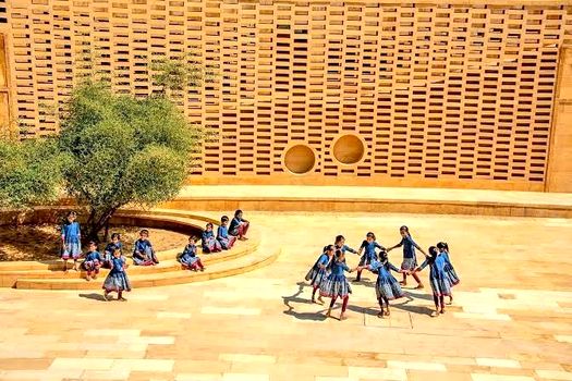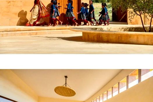 Proiectarea unui spaţiu de învăţare confortabil poate fi o provocare în inima deşertului Thar, unde schimbările climatice fac ca perioadele de secetă să fie mai lungi şi mai intense. Kellogg, care de obicei proiectează spaţii rezidenţiale de înaltă clasă, a fost motivat de o excursie din 2014 la Jaisalmer şi a dorit ca clădirea să simbolizeze speranţa şi rezistenţa deşertului prin îmbinarea aspectelor arhitecturii tradiţionale din Jaisalmer cu un design modern.