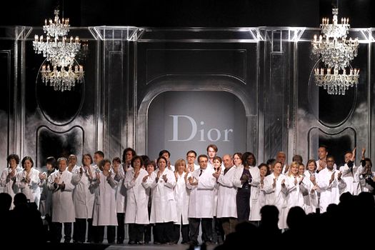 La finalul prezentării, care a avut pe fundal o muzică de cameră destul de sumbră, care a intrat în crescendo, ajungând la un pop ritmat, 50 dintre angajaţii Dior, îmbrăcaţi în halate albe de laborator, au urcat pe scenă în ovaţiile publicului.