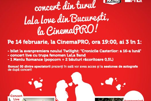 Reprezentaţia LaLa Band, precedată de avanpremiera noului film fenomen „Cronicile Casterilor: A 16-a lună”, poate fi cea mai frumoasă propunere pentru o seară specială alături de persoana iubită.