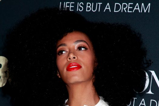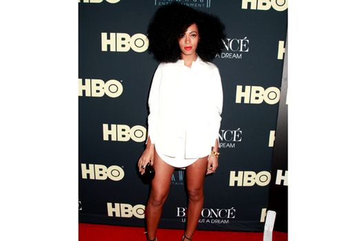 Solance Knowles a purtat o bluză de culoare albă, însă nu a purtat pantaloni. Încălţată cu o pereche de sandale de culoare neagră, sora lui Beyonce a păşit cu dezinvoltură pe covorul roşu şi nu a avut nicio reţinere în a poza pentru fotoreporterii prezenţi.