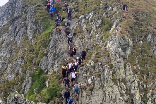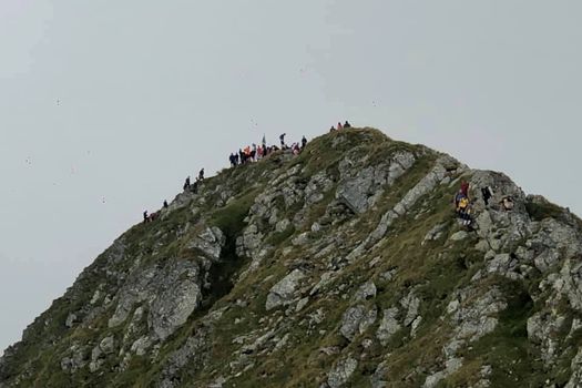 Iubitorii muntelui au stat la coadă, în weekend, pentru a urca pe Vârful Moldoveanu, cel mai înalt din România.