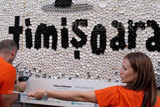 Mai multe tablouri realizate din capace din plastic au fost expuse pe o stradă pietonală din centrul Timişoarei, în cadrul unei acţiuni de ecologizare, sub sloganul ”Urban Intervention - Colorăm pietonala”.