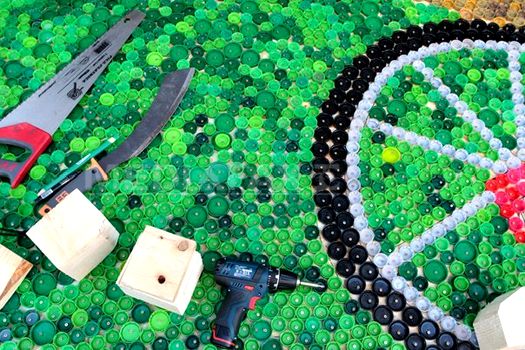 Tablourile au fost realizate în aproximativ cinci săptămâni din peste 100.000 de capace din platic şi vor rămâne expuse până în 24 mai.