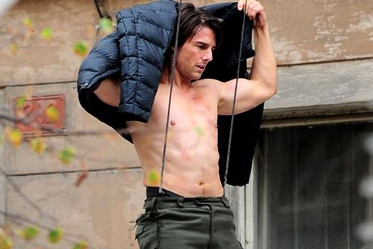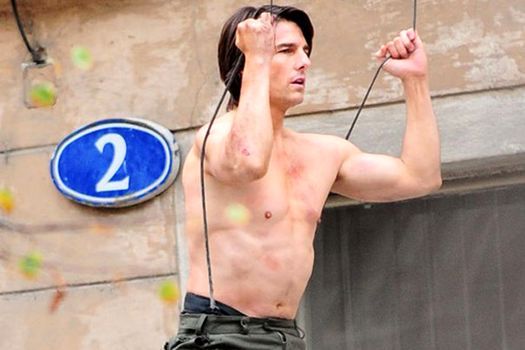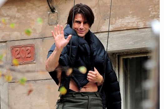 Actorul, în vârstă de 48 de ani, a fost fotografiat fără tricou în timpul unei cascadorii în care personajul Ethan Hunt, interpretat de Tom Cruise, coboară de la etajul trei al unei clădiri pe o furgonetă în mişcare.