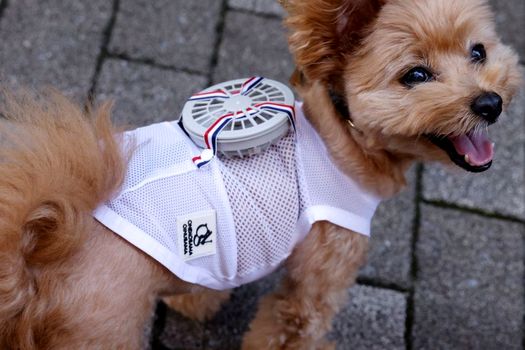 Un producător de haine de maternitate din Tokyo a creat ventilatoare portabile pentru a ajuta câinii şi pisicile pe timp de vară