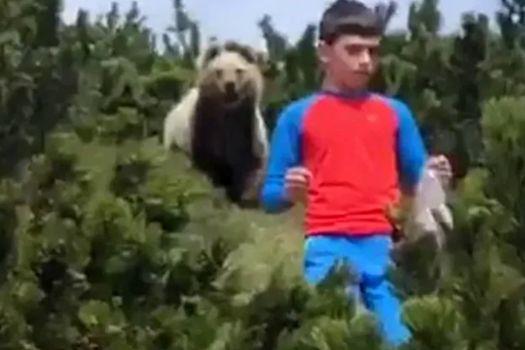 O altă familie a filmat luna trecută o întâlnire neobişnuită cu un urs brun în nordul Italiei. Alessandro, în vârstă de 12 ani, poate fi văzut mergând încet spre tatăl său vitreg, în timp ce ursul brun îl urmează îndeaproape în spatele lui.