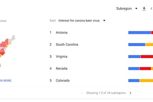 Printre ţările unde s-a observat creşterea căutărilor care asociază berea Corona şi virusul din China se numără Cambodgia şi Danemarca, dar şi Statele Unite, a relatat