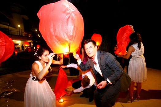 Răzvan şi Irina Fodor au importat o tradiţie thailandeză. Cu un an înainte de a se căsători, Răzvan şi Irina au fost în Thailanda. „În noaptea dintre ani se aprind acolo sute de lampioane, ajung să se confunde cu stelele. A fost atât de frumos acel moment, când toţi se îmbrăţişau şi îşi făceau promisiuni, încât am hotărât ca aşa să arate şi nunta noastră”, îşi aminteşte Răzvan. La nunta lor, în loc de mărturii şi artificii, invitaţii au primit câte un lampion pe care l-au lansat la miezul nopţii.
