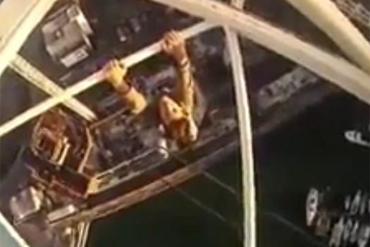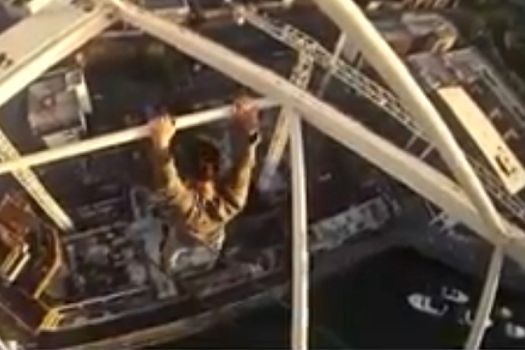 În filmare, se vede cum tânărul urcă pe macara fără a avea nicio măsură de protecţie, imaginile surprinse de cameră fiind de-a dreptul incredibile. În ciuda faptului că se afla la o înălţime atât de mare, James Kingston a mers şi mai departe şi a stat agăţat într-o mână de macara.