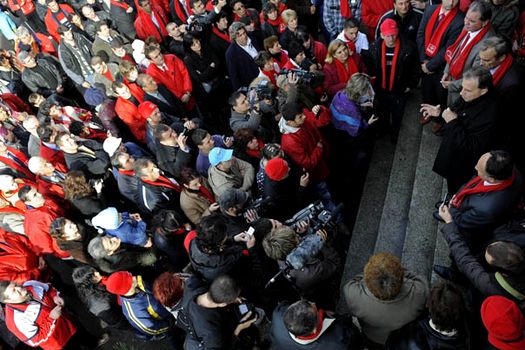 Geoană a fost însă refuzat politicos în dorinţa de a le vorbi în uzină muncitorilor, aşa cum făcuse şi în alte fabrici vizitate, şi a dat o scurtă declaraţie de presă la finalul vizitei.