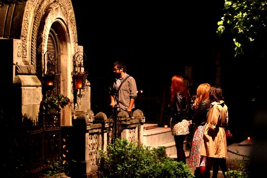 Astfel, la intrarea în cimitir, la Bellu, vizitatorul putea studia o hartă a celor mai importante locuri de vizitat: mormite de artişti precum Adrian Pintea, Florian Pittiş, Amza Pellea şi Ioan Luchian Mihalea. La începutul programului oficial, la ora 20.00, zeci de curioşi cu aparat foto/ aparat video/ copil în cărucior ataşate aşteptau un ghid, la intrarea în cimitir, în faţa hărţii cu locurile de vizitat, morminte celebre, şi pe aleea cu lumânări aprinse, care ducea spre capela cimitirului.
