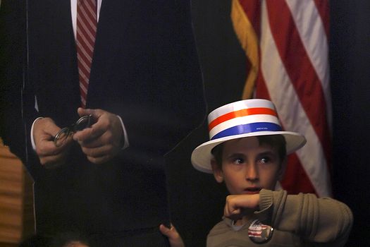 La ora 4.00 toată lumea urmărea predicţiile CNN sau moţăia pe scaune, în sala cam răcoroasă a hotelului, acest moment mort dând prilej unora dintre cei prezenţi să se fotografieze cu machetele de carton ale celor doi candidaţi Barack Obama şi John McCain.