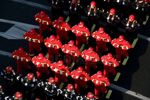 Timp de o oră, au trecut pe sub Arcul de Triumf, de la maşini de luptă, soldaţi pe cai, scafandri şi luptători din toate categoriile de arme. În plus, la parada din acest an au putut fi admirate, în premieră, trei detaşamente subordonate DGIA. De asemenea, au trecut pe deasupra Arcului de Triumf trei aeronave Spartan C27, 3 aeronave IAR -99 Şoim şi 6 aparate MiG-21 LanceR. În anii precedenţi, din cauza ceţii, avioanele MiG nu s-au putut ridica de la sol.