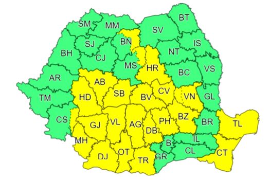 Sunt vizate judeţele Bistriţa-Năsăud, Harghita, Mureş, Braşov, Covasna, Prahova, Dâmboviţa, Argeş, Vâlcea, Dolj, Mehedinţi, Gorj, Sibiu, Alba, Caraş Severin, Hunedoara, Vrancea, Buzău, Tulcea, Constanţa, Teleorman şi Olt.