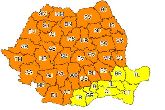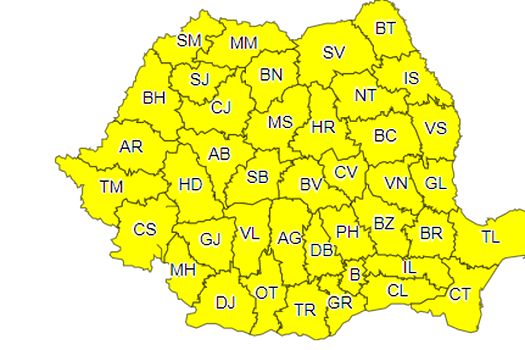 Anterior, meteorologii anunţaseră şi o alertă cod galben de ploi torenţiale, vijelii şi grindină în toată ţara, de marţi, ora 10:00 până joi ora 10:00, în toată ţara.