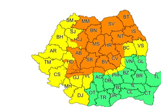 De la ora 14.00 intră în vigoare un Cod portocaliu în Transilvania, Maramureş, jumătatea de nord a Moldovei şi la munte, aici urmînd să fie perioade cu vijelii puternice, cu rafale de peste 70 – 90 km/h, averse torenţiale, frecvente descărcări electrice şi grindină. Cantităţile de apă vor depăşi 30 – 40 l/mp şi izolat 50 – 60 l/mp. Codul portocaliu este în vigoare până miercuri dimineaţă, la ora 5.00.