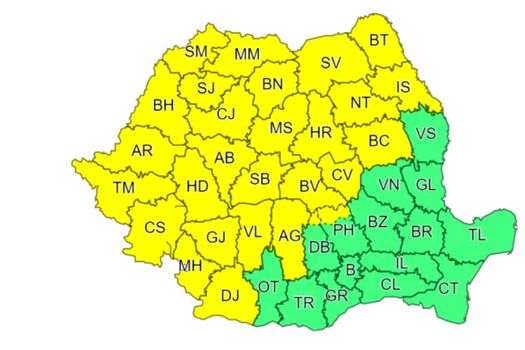 Administraţia de Meteorologie a emis o avertizare cod galben, valabilă în intervalul 05 octombrie, ora 15:00 – 06 octombrie, ora 18:00, pentru instabilitate atmosferică accentuată, cantităţi însemnate de apă şi intensificări ale vântului.