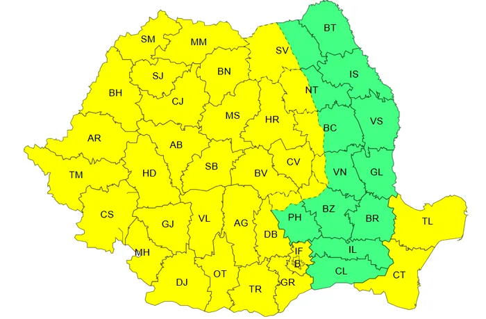 Două avertizări meteorologice cod galben pentru intensificări ale vântului sunt în vigoare vineri şi sâmbătă. În Banat, Crişana, Maramureş, Transilvania, Oltenia, vestul şi centrul Munteniei şi în Dobrogea vântul ajunge la 70 km/h.