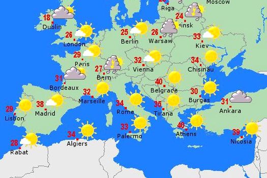 Temperaturile maxime sunt prognozate în Serbia şi în Grecia, ajungând şi până la 40 de grade Celsius, duminică, la Belgrad şi la Atena.