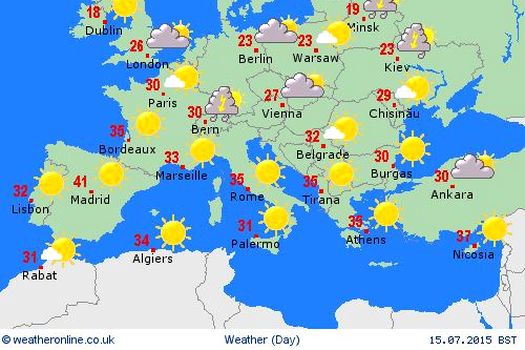 La Madrid sunt prognozate temperaturi de până la 41 de grade miercuri şi joi, în timp ce la Paris (Franţa), Atena (Grecia) sau Belgrad (Serbia) sunt aşteptate temperaturi de 36-37 grade Celsius.