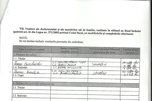 De asemenea, Iancu precizează că are un apartament de 57 de metri pătraţi în Craiova, cumpărat în anul 2008, şi că nu deţine bunuri de valoare, nu are bani în conturi şi nici datorii.