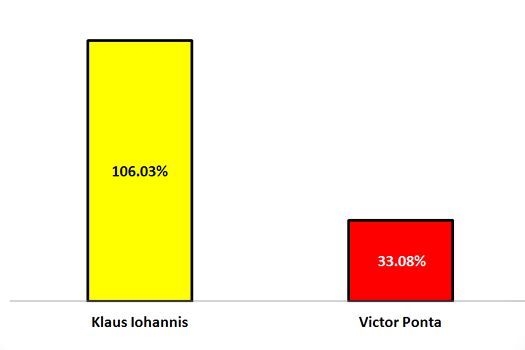 Klaus Iohannis a avut un engagement al fanilor de trei ori mai mare (106,3% faţă de 33.08%) decât contracandidatul său Victor Ponta, engagement care s-a dovedit a fi decisiv în câştigarea competiţiei atât în mediul online, cât şi la urne.