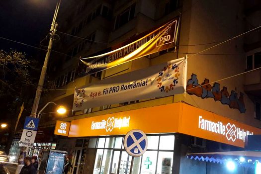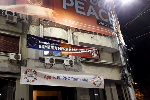 Sub mesajul PSD cu ”Patrioţi în Europa. România merită mai mult!”, Pro România a ridicat un alt banner cu îndemnul ”Aşa e. Fii Pro România!”.