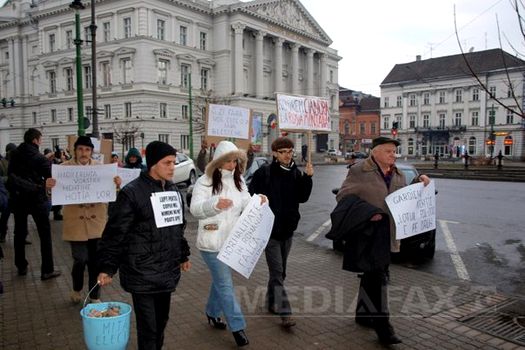 Acţiunea a fost organizată de o asociaţie locală, iar cei aproximativ 25 de participanţi au fost aceiaşi care protestează în faţa Primăriei începând din 15 ianuarie, transmite corespondentul MEDIAFAX.