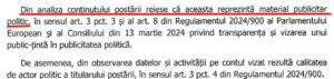 Potrivit deciziei, materialul are caracter electoral și a fost realizat într-un spațiu instituțional al statului, cu implicarea președintelui în favoarea unui candidat.