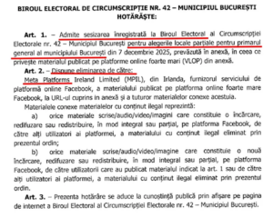 Biroul Electoral al Municipiului București a dispus retragerea de pe internet a înregistrării video realizate în incinta Palatului Cotroceni, în care apar primarul general Nicușor Dan, președintele USR Cătălin Drulă și europarlamentarul Vlad Voiculescu.