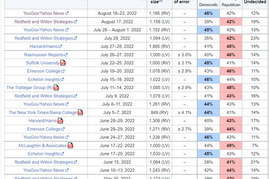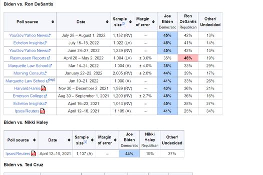Majoritatea sondajelor de opinie, efectuate între 12 aprilie 2021 şi 1 august 2022, arată că guvernatorul Floridei, Ron DeSantis, ar putea pierde.