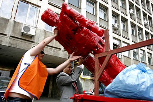 Bodu a luat manechinul făcut din gunoaie şi l-a aruncat într-o camionetă plină cu gunoiul strâns din Sectorul 5, spunând că actualul primar "Care Este" se mută la Glina, autorurismul urmând a duce manechinul la groapa de gunoi aflată la marginea Bucureştiului.