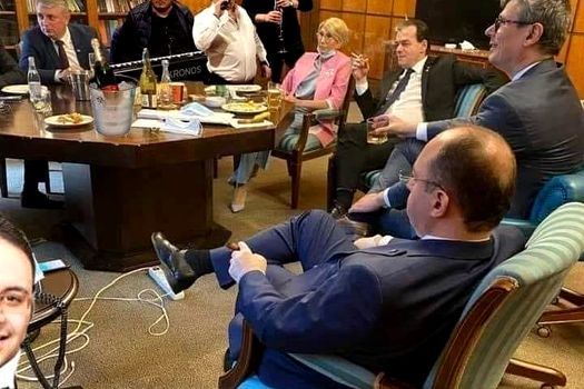 Fotografia cu Ludovic Orban şi o parte a membrilor cabinetului său relaxaţi, în timp ce fumează în birou, a fost distribuită de mii de ori pe internet în ultimele ore. Pe lângă cea originală, şi pozele modificate de internauţi fac senzaţie pe grupurile de Facebook ori pe Instagram.