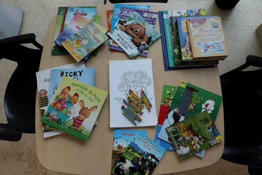 În spaţiul amenajat, copiii pot să deseneze, să citească sau să coloreze.