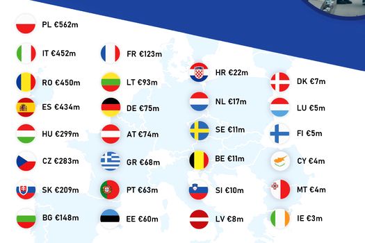 România primeşte, astfel, fonduri în valoare de 450.119.357 €. Mai mult decât ţara noastră primeşte Polonia – 562.098.072 €, fiind destinaţia către care s-au îndreptat cei mai mulţi dintre refugiaţi, momentan.