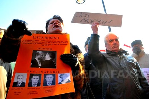 Braşov: Aproape 40 de membri ai PSD, cărora li s-au alăturat şi zece reprezentanţi ai PNL, au protestat în faţa sediului PDL, strigând sloganuri împotriva preşedintelui Traian Băsescu şi a „poliţiei politice”.