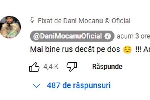 „Mai bine rus decât pe dos ☺️ !!! Am dreptate ?”, este comentariul postat de pe contul lui Dani Mocanu şi blocat pe prima poziţie lângă
