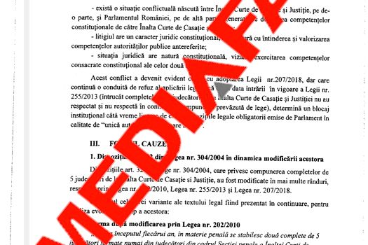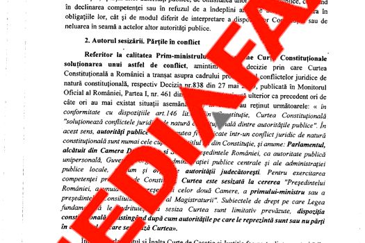 Din sesizarea, obţinută de MEDIAFAX, depusă la Curtea Constituţională de premierul Viorica Dăncilă: