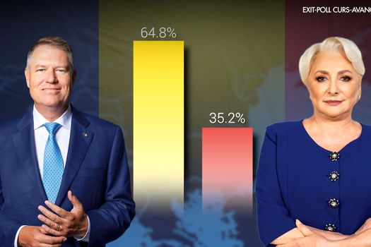 UPDATE ora 21.00 Exit poll-ul Curs-Avangarde, pentru ora 19.30, arată că în turul al doilea al alegerilor prezidenţiale, Klaus Iohannis a obţinut 64,8%, în timp ce Viorica Dăncilă a primit 35,2%.