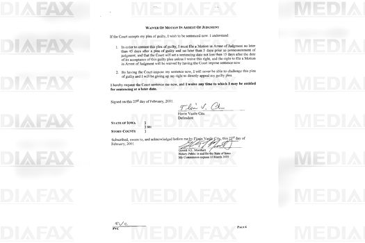 Judecătorul Tribunalului Districtual, Thomas R. Hronek, spune în document că acceptă acordul şi stabileşte următoarele în decizia de condamnare:
