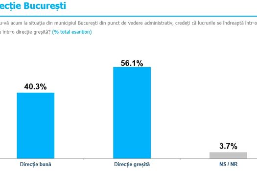 Întrebaţi dacă din punct de vedere adminitrativ, lucrurile se îndreaptă într-o direcţie bună sau greşită, doar 40,3% s-au arătat optimişti, 56,1% nu prea mai văd cale de rezolvare, cu Firea la conducere.
